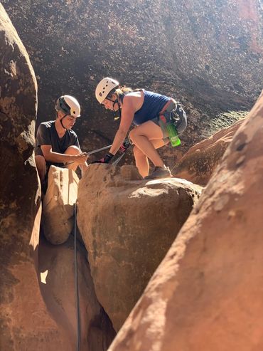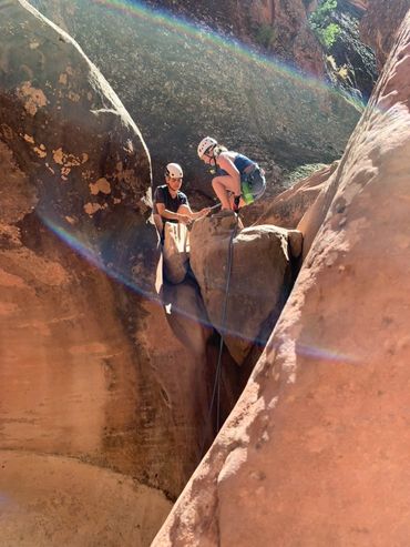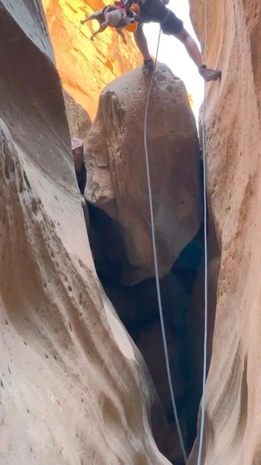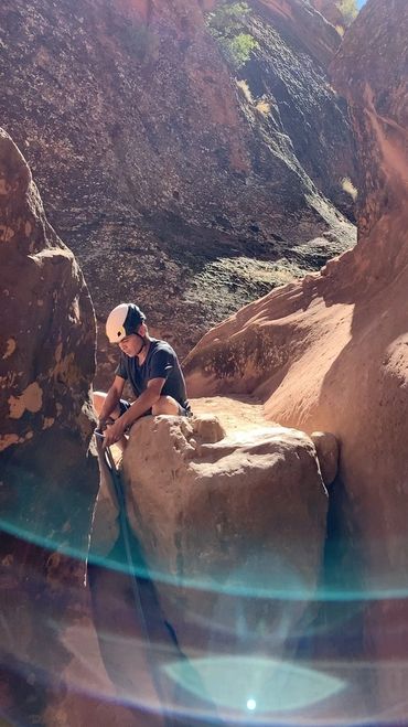 the sport of exploring a canyon by engaging in such activities as rappelling, rafting, and waterfall jumping.